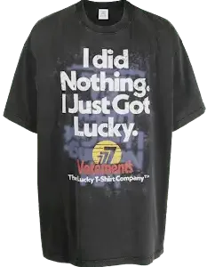 Replica Vetements I Got Lucky Tee is a stylish and comfortable tee that showcases a unique design, perfect for casual wear.